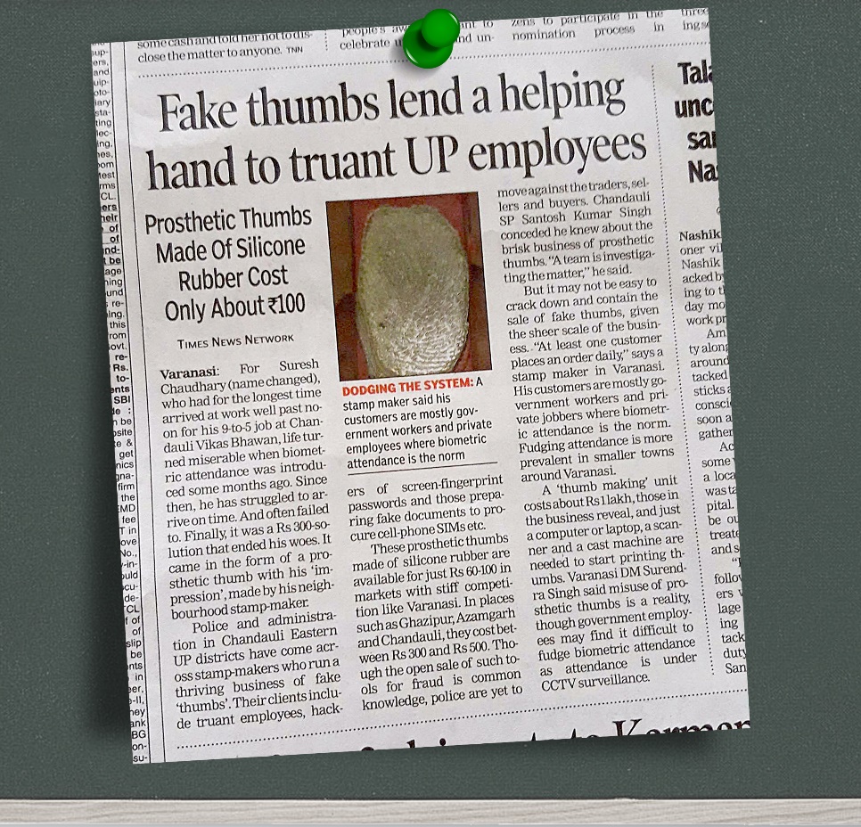 It might shock you, but as the news clip informs, a fake finger impression can be sourced for only Rs 100/- in our Indian towns.